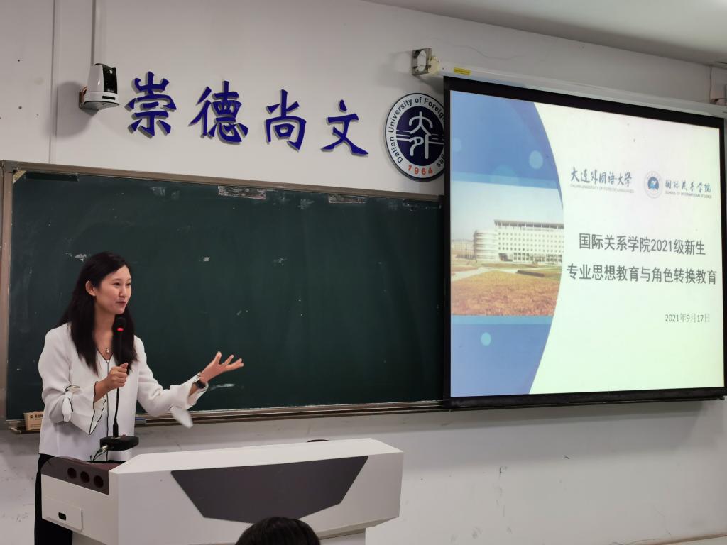王琳介绍国际事务与国际关系专业的培养方向和历届涌现各个领域优秀的人才,鼓励新生努力并且时刻抓住机会,在关键的时刻绽放光芒;学会感恩,不要做精致的利己主义者。同时利用专业知识对在座新生进行心理适配教育,希望大家利用大学四年完善人格,收获满满。