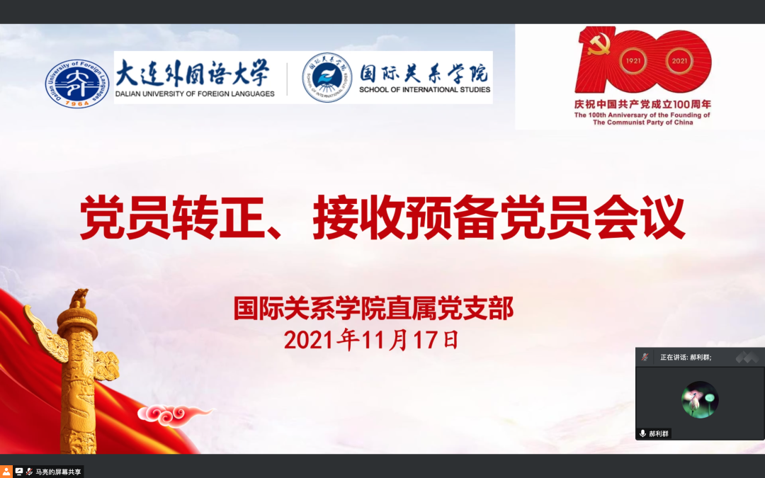 直属党支部在线召开党员转正、接收预备党员大会,全体教工党员、学生(预备)党员参加会议。会议由午夜影院