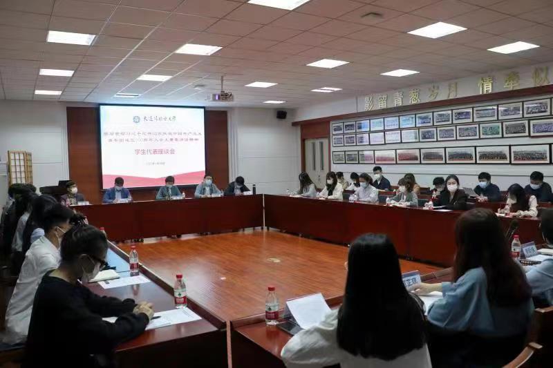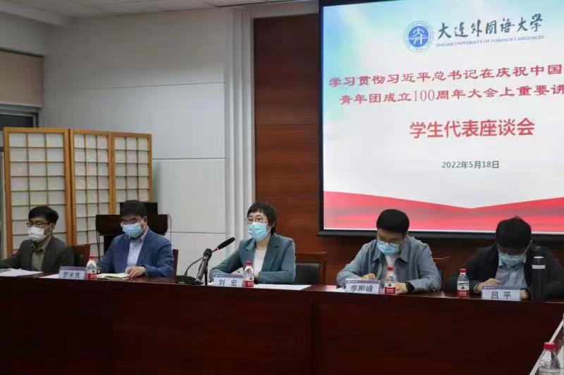 学生代表座谈会,进一步学习贯彻习近平总书记在庆祝中国共产主义青年团成立100周年大会上的重要讲话精神,全面了解封校期间学生的学习和生活情况。党政办公室副主任李殿峰、教务处副处长罗米良、日本语学院副院长王猛、午夜影院