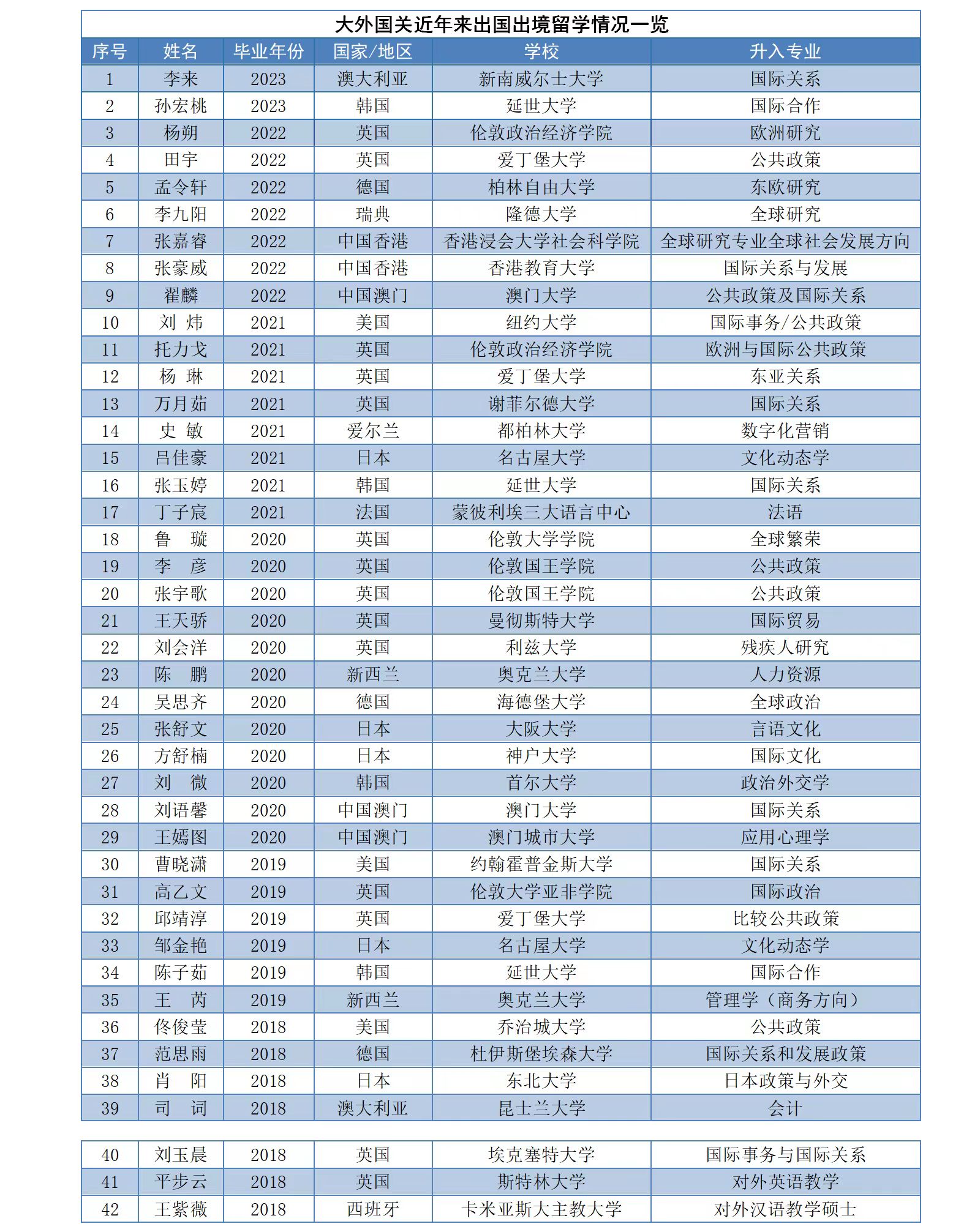 成立于2018年1月,现拥有国际事务与国际关系专业和外交学本科生专业,及“国别和区域研究”硕士授予权。