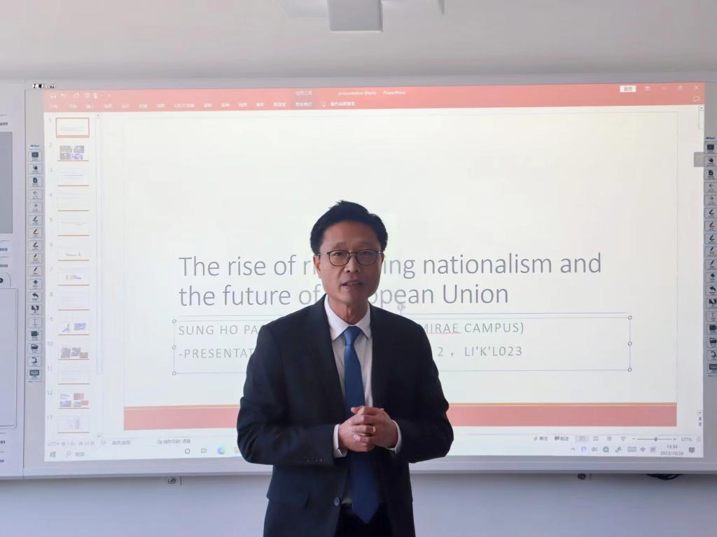 朴教授从经济视角出发,以翔实的数据和案例展示了近年来欧洲一些国家经济衰退、社会不平等加剧的现实图景,并指出上述的经济和社会变动是欧洲右翼民族主义激增的根本原因。在讲座中,朴教授还以“英国脱欧”为例,讨论了右翼民族主义对欧盟前景的影响。