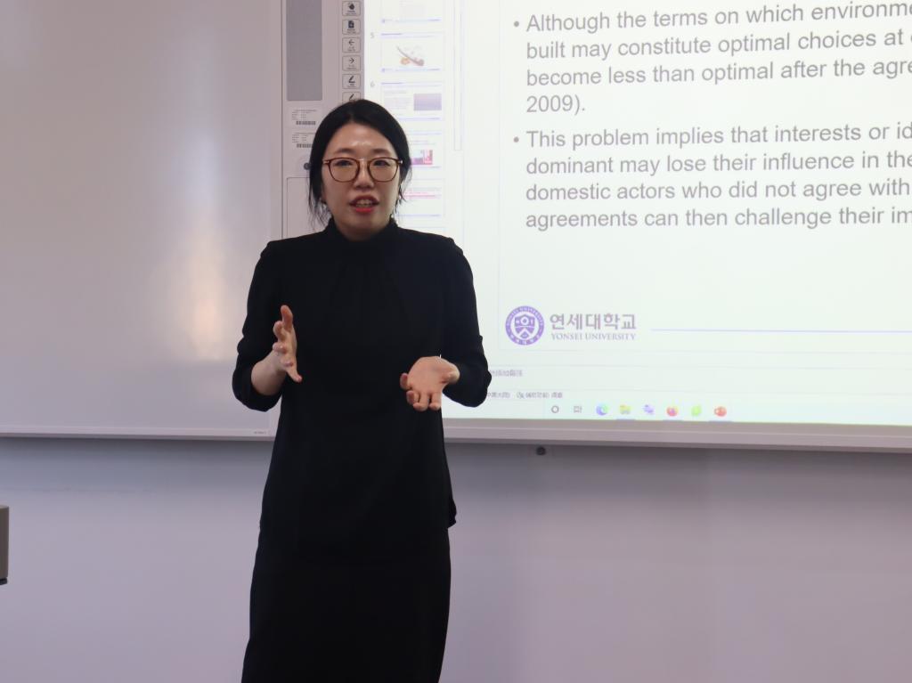 宋杨助理教授从韩国和新加坡共同面临的空气污染问题出发,分析了两国国内不同行为体对该问题的不同认知与态度,指出了政府间协议在转变为切实可行的国内政策中面临的诸多困难。她最后指出,中韩两国的外交关系深刻影响着包括环境问题在内的一系列领域的政策制定与实施,希望两国能够携手走上一条互惠互利的合作道路。