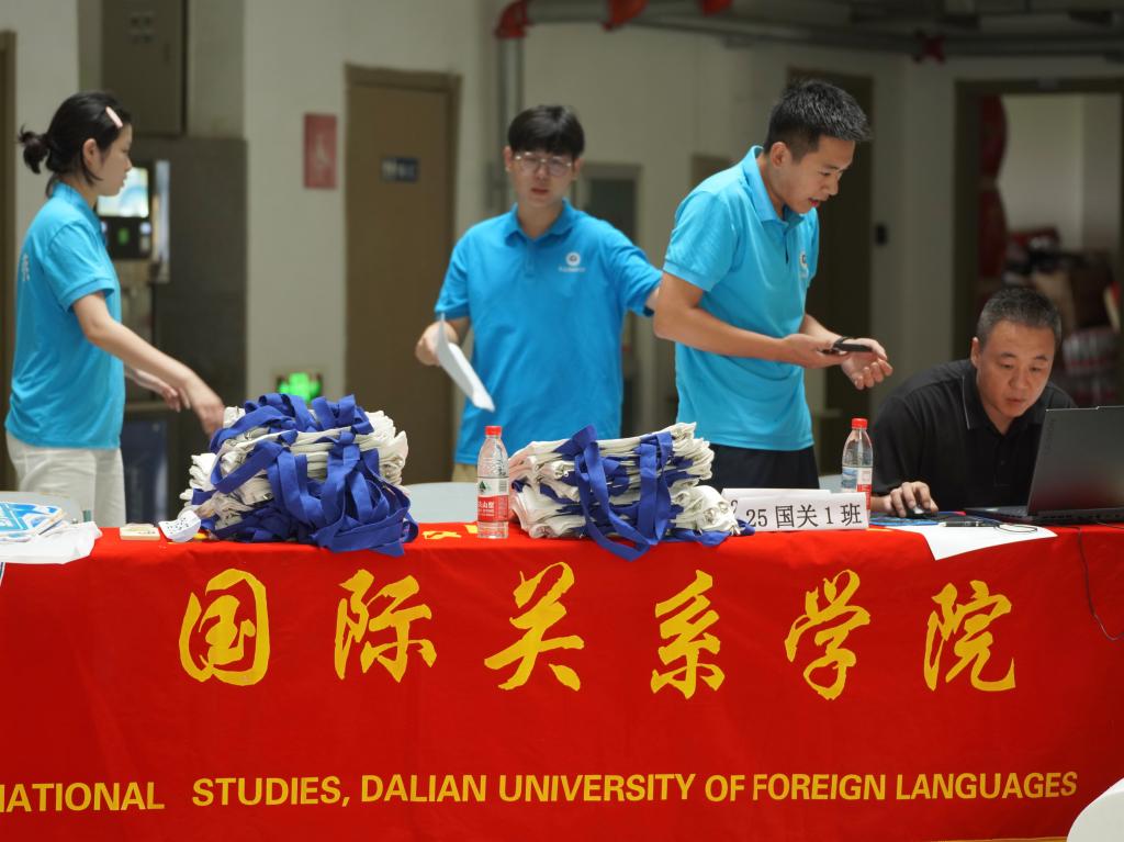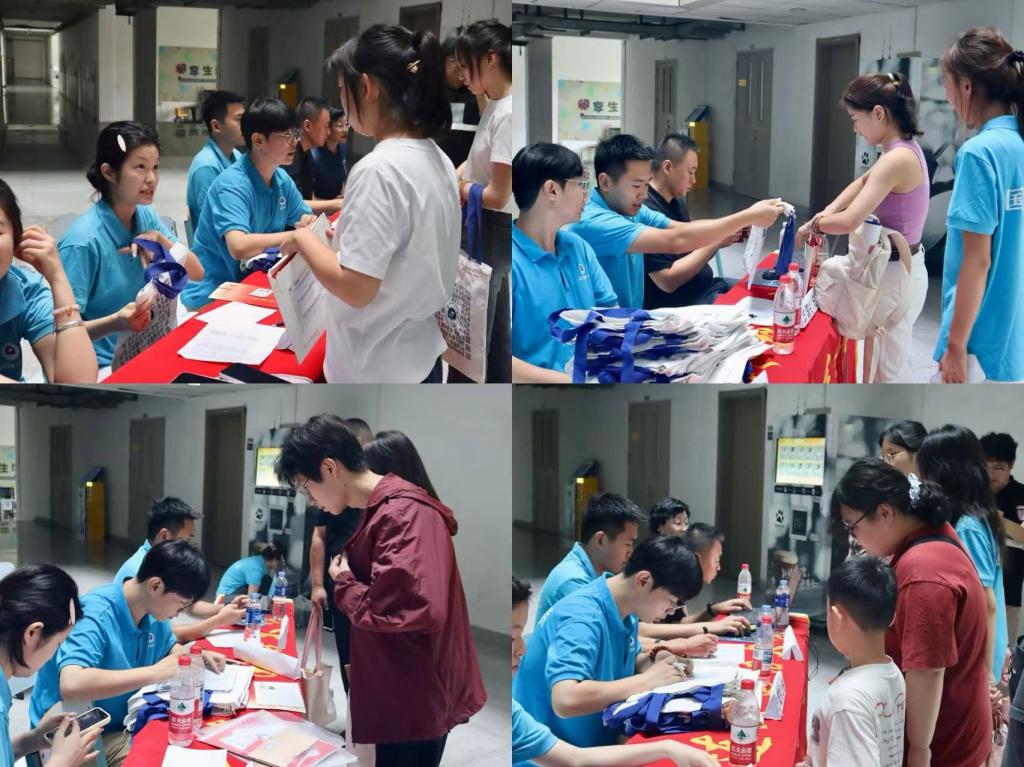 志愿者与各班小导耐心解答疑问、高效办理手续