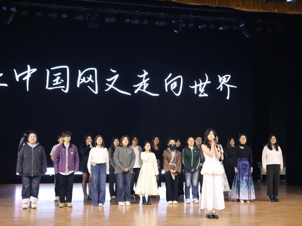 《锦绣中华》勾勒出中华大地的锦绣山河;英文金曲《Bleeding Love》用醇厚的嗓音演绎别样深情;劲舞《Style》与《Dirty Work》轮番登场,动感的节拍、炸裂的舞台掌控力将现场气氛持续推高;《打上花火》的日语唯美演唱、《Sorry Would Go A Long Way》的英文抒情演绎,展现国关学子的多元语言素养与艺术才华;神秘节目则是参与网文课同学的走秀搭配歌曲演唱,创意十足的形式让全场惊喜不已,悬念揭晓的瞬间掌声此起彼伏。
