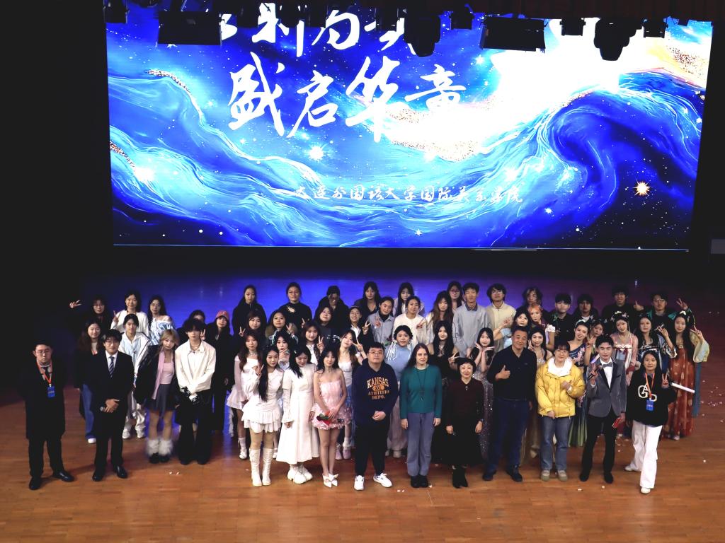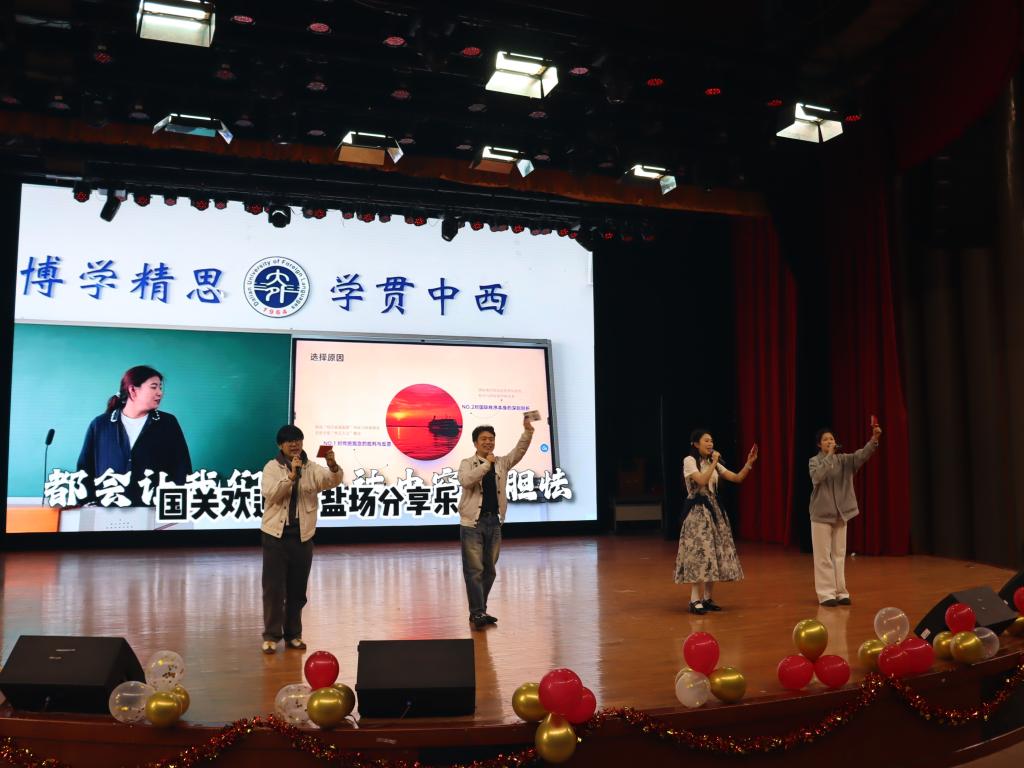晚会开始前,在场师生一同观看了2025年学院年度回顾视频与教师祝福视频,过往一年的成长点滴与老师们的殷切寄语交织,让现场暖意融融。视频落幕,《国关欢迎你》奏响序曲,瞬间点燃现场氛围,晚会正式拉开帷幕。