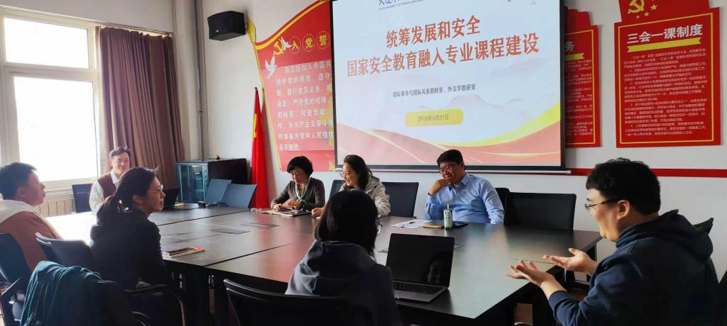 国际事务与国际关系教研室、外交学教研室联合举办了“统筹发展和安全:国家安全教育融入专业课程建设”专题研讨会。学院党总支书记郝利群、院长薛晓芃、东北亚研究院副院长吕平、国际事务与国际关系教研室主任韩雪亮、外交学教研室主任李晓乐及两个教研室全体教师参加了本次研讨。会议由韩雪亮主持。