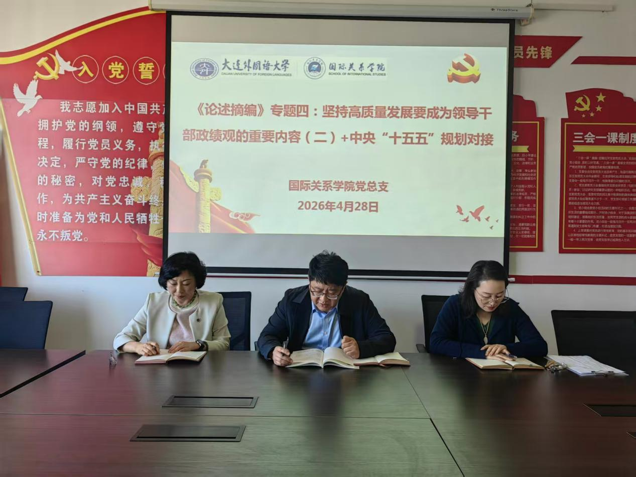 (东北亚研究院)处级领导干部树立和践行正确政绩观学习教育读书班于11B537党员活动室开展第七次集中学习,在专题学习《论述摘编》“高质量发展”相关内容基础上,对接学习《中共中央关于制定国民经济和社会发展第十五个五年规划的建议》。东北亚研究院副院长吕平领学,党总支书记郝利群、院长薛晓芃参加学习。