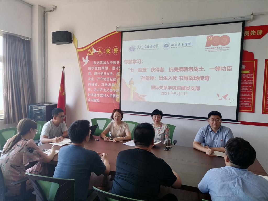 直属党支部全体党员共同观看了习近平总书记在“七一勋章”颁授仪式重要讲话和新闻专题片《“七一勋章”获得者、抗美援朝老战士、一等功臣孙景坤:出生入死 书写战场传奇》。