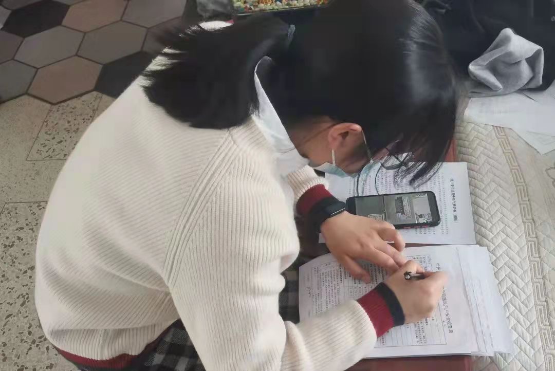 4月3日、4日,在做好自身疫情防控的前提下,张家欣参与了社区对居民天然气设施设备进行的安全检查工作,主要负责居民用户安全检查表的记录工作和用户安全使用天然气承诺书的签字工作,跟随负责人对小区里的居民用户进行入户检查,记录用户所使用的燃气表厂家及编号,抄录燃气表读数、进行安全用气常识宣传等内容。