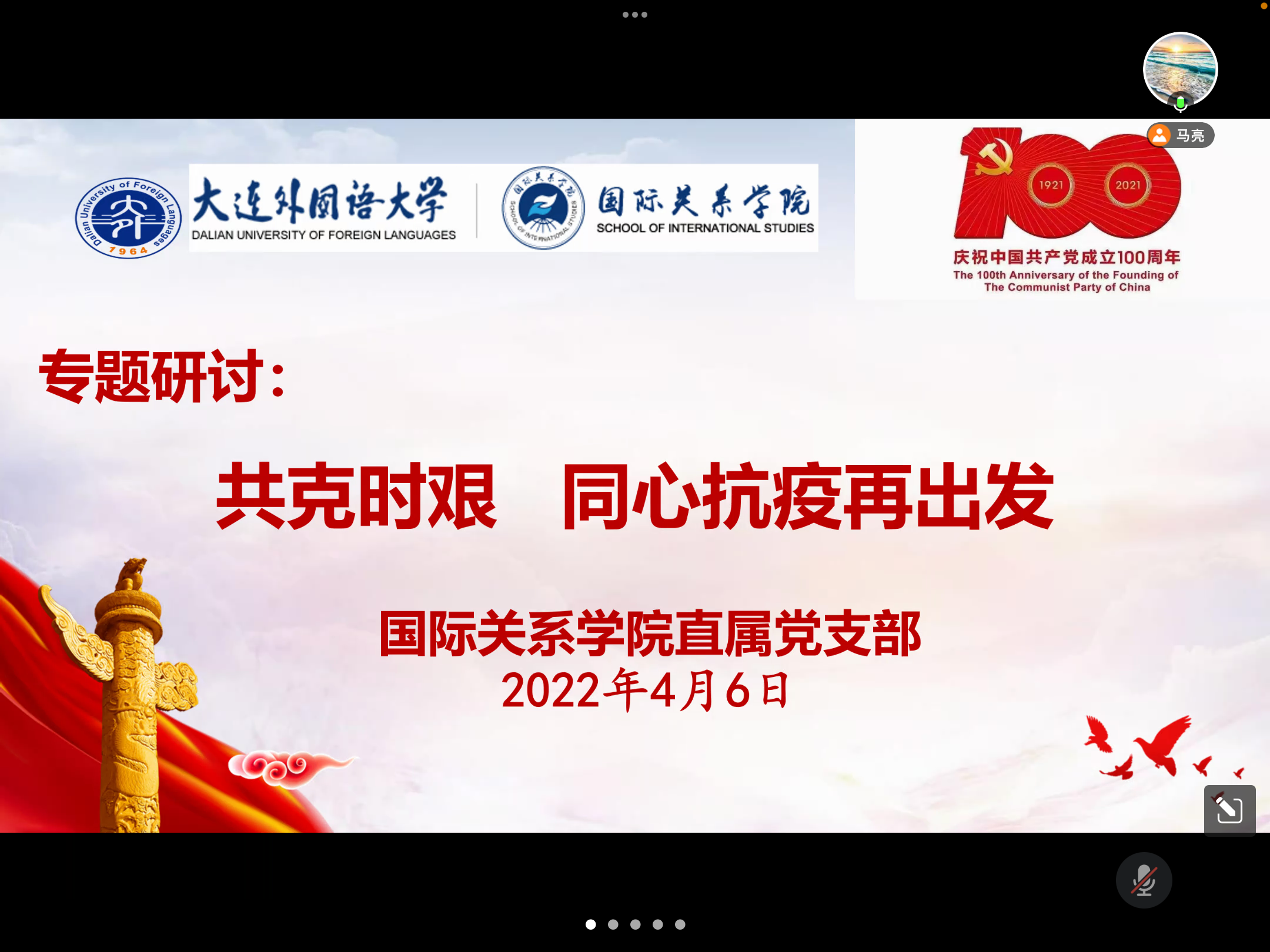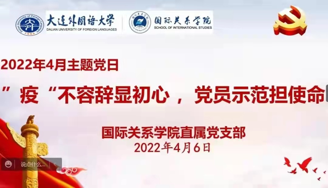 直属党支部关于在坚决打赢防控歼灭战中充分发挥党组织作用的通知》,从扛起政治责任、发挥党组织功能和做好思想引领三个方面做了说明。郝利群书记详细梳理了自学校封闭管理以来,学院开展的各项工作。她充分肯定了支部全体师生党员、教职员工和全体学生在疫情防控期间所付出的辛勤努力,特别是在克服困难做好校园值守、组织线上教学、推进网格化管理、组建防控突击队、处置突发事件、开展文体活动等工作中,全体国关人所展现的共克时艰、共同抗疫、积极乐观、奋勇向前的精神面貌。随后,学生党员云琪布日、张家欣、赵平安分别结合自己在疫情防控过程中,下沉社区开展志愿服务的工作情况做交流发言,分享了她们在参加疫情防控志愿服务工作中的思想感悟。郝利群书记高度赞扬了她们的无私付出和发挥的模范作用,叮嘱全体师生党员在下沉服务的过程中,做到积极响应党组织号召,服从党组织安排,做好防疫防护,确保自身安全。