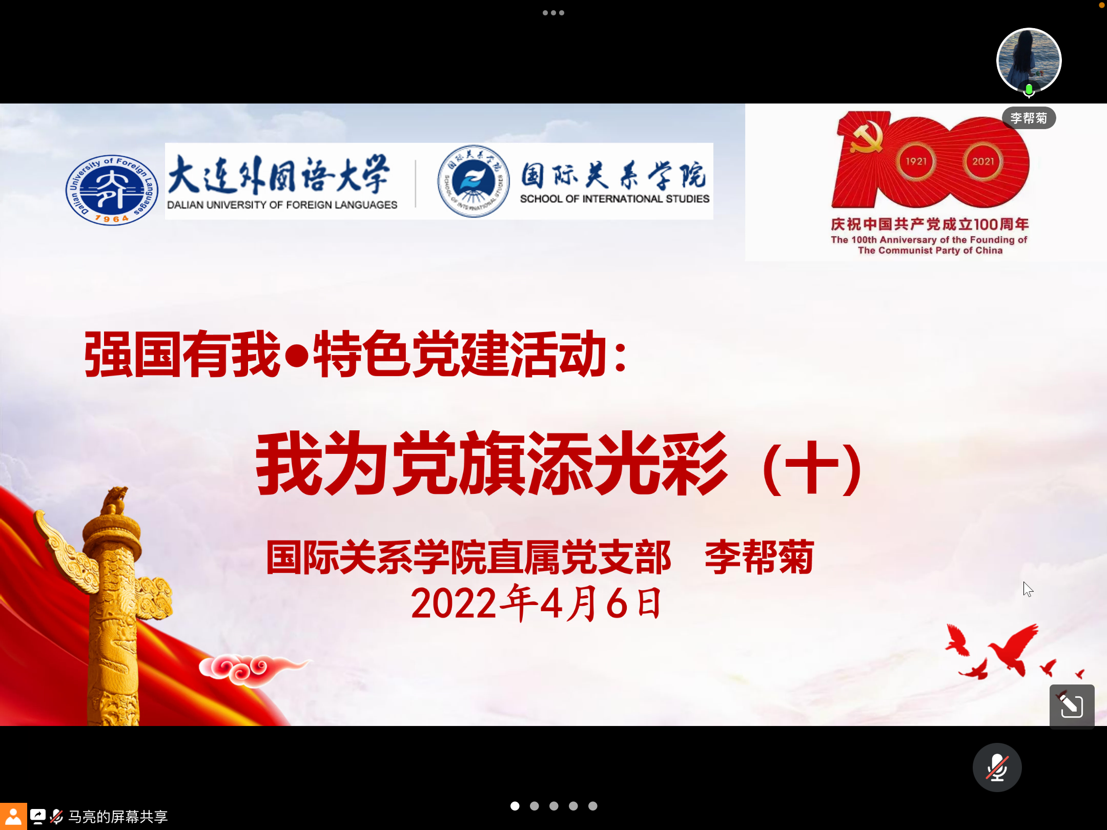 首先,郝利群书记按照“三进”要求,以“砥砺奋进新征程—从政府工作报告看中国发展”为题,用英文给参会同志上了一堂专题党课、形势政策课。她结合第十三届全国人民代表大会第五次会议上《政府工作报告》,以“稳、活、进、暖”四个关键词为切入点,详细解读了2022年政府工作的九项重点任务,号召全体党员认真学习领会2022年两会精神,在新的征程上,攻坚克难,砥砺奋进,为实现中华民族伟大复兴的中国梦不懈奋斗,以优异成绩,喜迎党的二十大的胜利召开。