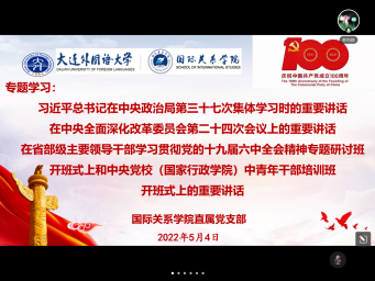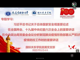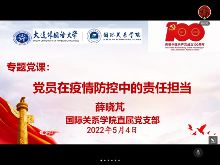 在教学管理工作、防疫政策落实方面的成果,充分肯定了支部全体师生党员、教职员工以及全体学生在做好校园值守工作、站好每一次岗、处置突发事件、参与核酸检测志愿服务、组织线上教学、开展线上活动等方面作出的辛勤努力和积极奉献。全体国关人秉承不忘初心,为人民服务的宗旨,始终牢记“疫情就是命令、防控就是责任”的使命,积极应对、双向发力,共克时艰。