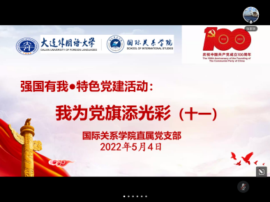 在特色党建活动“强国有我·我为党旗添光彩”(第十一期)中,2019级学生党员张家欣发言。她以“五四青年节”为主题,回首百年来一代代中国青年以担负天下兴亡、实现民族复兴为己任,以青春之我,创建青春之民族,创建青春之国家,号召当代青年秉承光荣传统、树立积极的人生目标、发扬自强不息的精神。