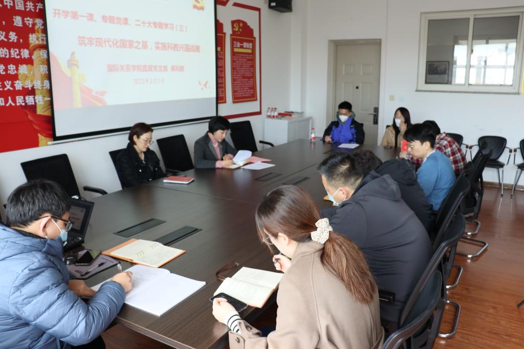 根据相关工作安排,郝利群首先对2022年组织生活会和民主评议党员工作进行部署。随后,直属党支部组织全体党员进行第三次党的二十大精神专题学习,以“筑牢现代化国家之基,实施科教兴国战略,强化现代化人才支撑”为题上了开学第一课(专题党课)。在学习中,郝利群带领全体党员、入党积极分子重点学习了党的二十大报告第五部分相关内容,结合高等教育发展实际,解读了办好人民满意教育、完善科技创新体系、实施创新驱动发展战略、实施人才强国战略等重要举措。她强调,教育是国之大计、党之大计,全体党员和入党积极分子要原原本本、逐字逐句学党的二十大报告和党章,坚定不移听党话、跟党走,怀抱梦想又脚踏实地,敢想敢为又善作善成,立志做有理想、敢担当、能吃苦、肯奋斗的新时代好青年。
