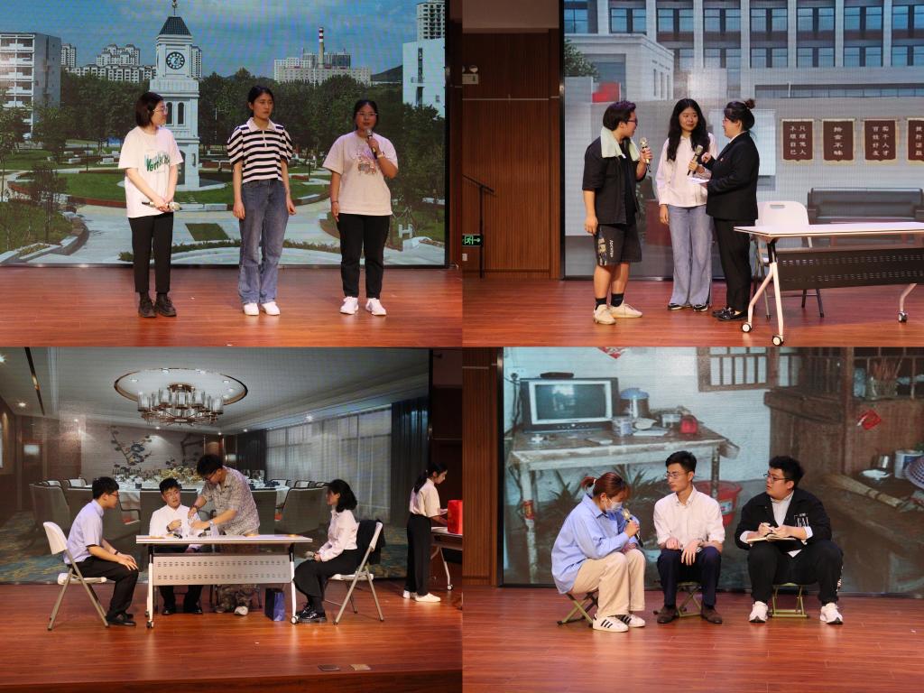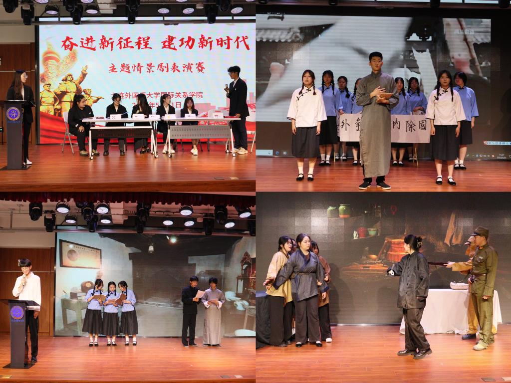 直属党支部主动创新大学生思想政治教育形式,积极营造育人环境,把“奋进新征程,建功新时代”主题情景剧表演赛作为学院开展主题教育的重要形式。情景剧比赛也深受大学生的欢迎,同学们经过近2个月的编排、演练,共呈现了8个参赛剧目。2021级1班主演的“巴黎和会”展现了巴黎和会外交的失败促进民族意识的觉醒和外交先辈们脊梁不可曲、尊严不可灭的英勇精神。2022级3班主演的“青春中国”生动记录了五四运动,青年学生为祖国利益、民族尊严奔走呐喊的精彩瞬间,诠释了中国恢复联合国合法席位的艰辛历程,奏响了浩气长存的爱国主义壮歌。2022级1班主演的“南陈北李”让我们切身感受到一代又一代中国共产党人传承马克思列宁主义的伟大历程。2021级3班主演的“红色记忆”真实反映了抗日战争中悲壮而真挚的军民鱼水情。2020级1班主演的“改革巨浪”生动展示改革开放的号角吹响强国富国之音,企业改革,神州大地生机勃勃的繁荣景象。2022级2班主演的“亮剑刃内”、 2020级2班主演的“清风利剑除腐败”让我们看到党风廉政建设、党内筑牢拒腐廉洁防线的重大成果。2021级2班主演的“新时代的焦裕禄”塑造了带领群众脱贫攻坚的优秀干部形象,赞扬他们全心全意为人民服务,关心群众、无私奉献、取得脱贫攻坚最终胜利的炽热情怀。