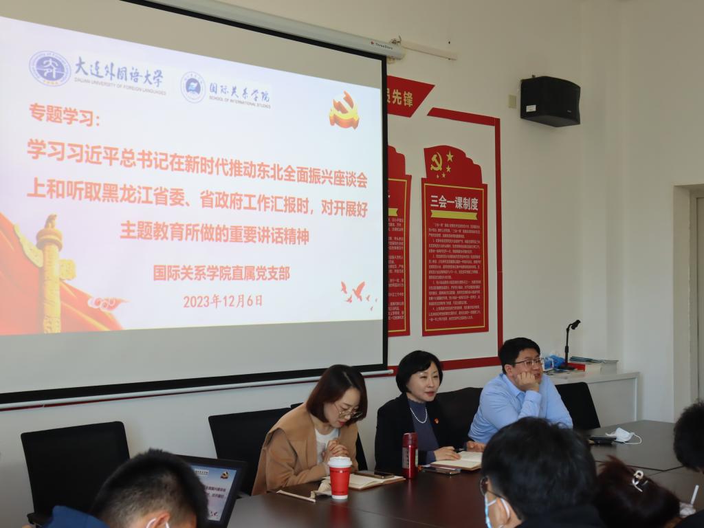 按照计划,党日活动安排专题学习,学习习近平总书记在新时代推动东北全面振兴座谈会上和听取黑龙江省委、省政府工作汇报时,对开展好主题教育所做的重要讲话精神。在主持学习时,郝利群强调,全体师生应积极将小我投入到国家建设中,关心国家大事,积极响应党的号召,以民族复兴为己任,按照辽宁全面振兴新突破三年行动方案为引领,推动东北全面振兴。