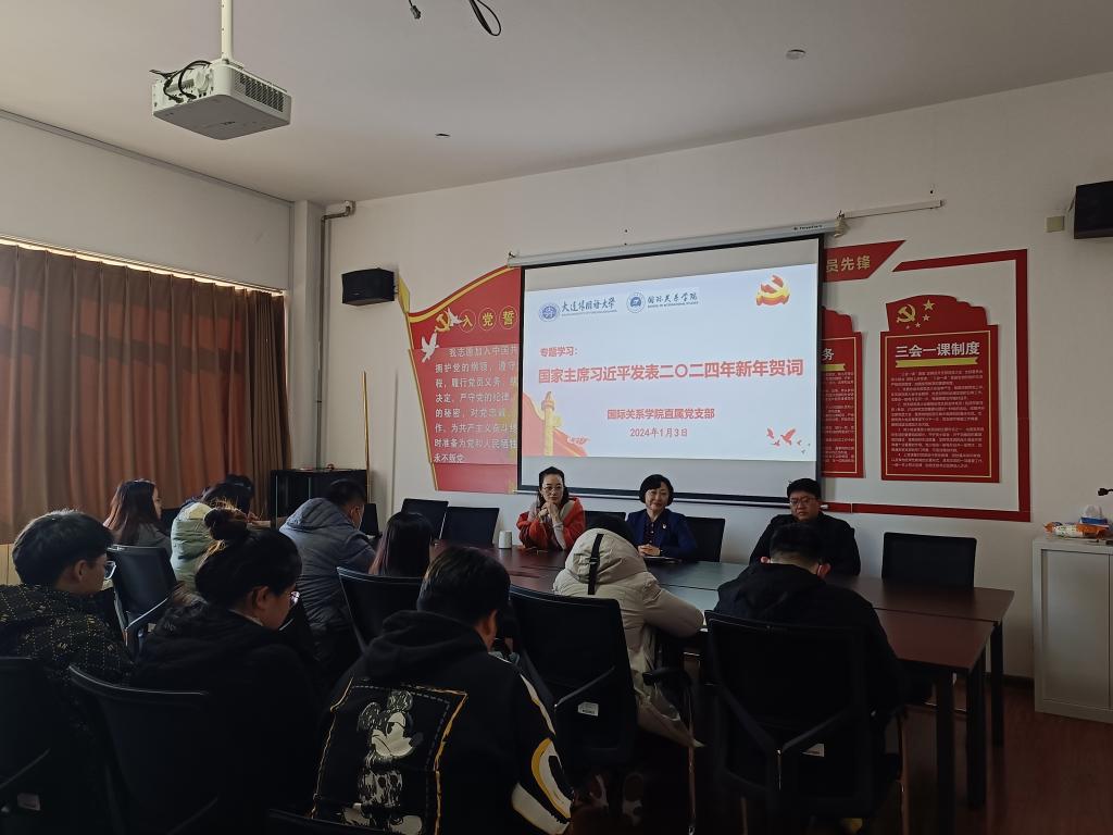 首先,郝利群组织支部全体党员重温习近平主席二〇二四年新年贺词。随后,与会党员对习近平主席的新年贺词谈感想谈体会。在发言中,党员同志共同认为习近平主席的发言高屋建瓴、磅礴有力,全面总结了在党中央坚强领导下,2023年我国取得的历史性成就,展现了中国特色社会主义道路自信、制度自信、理论自信、文化自信。贺词心系人民、感人至深,让广大党员干部和青年更加踏实、更有干劲,面对2024年的新生活,更有勇气、底气和朝气。