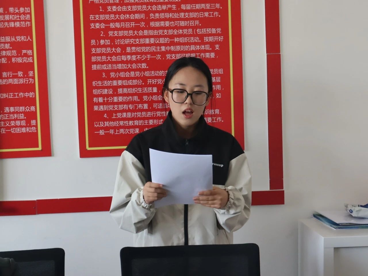 在特色党建活动“强国有我”第二十三期中,中共党员王茜以“青春逢盛世,奋进正当时”为题作发言。她谈到,党员及积极分子在学习上要不甘落后,关注时事,拓展视野;在工作中发挥党员带头者作用,抓住机遇,积极实习;在就业上广泛利用学校资源,积极参加校园招聘会。青年人心有所向,必能功不唐捐。