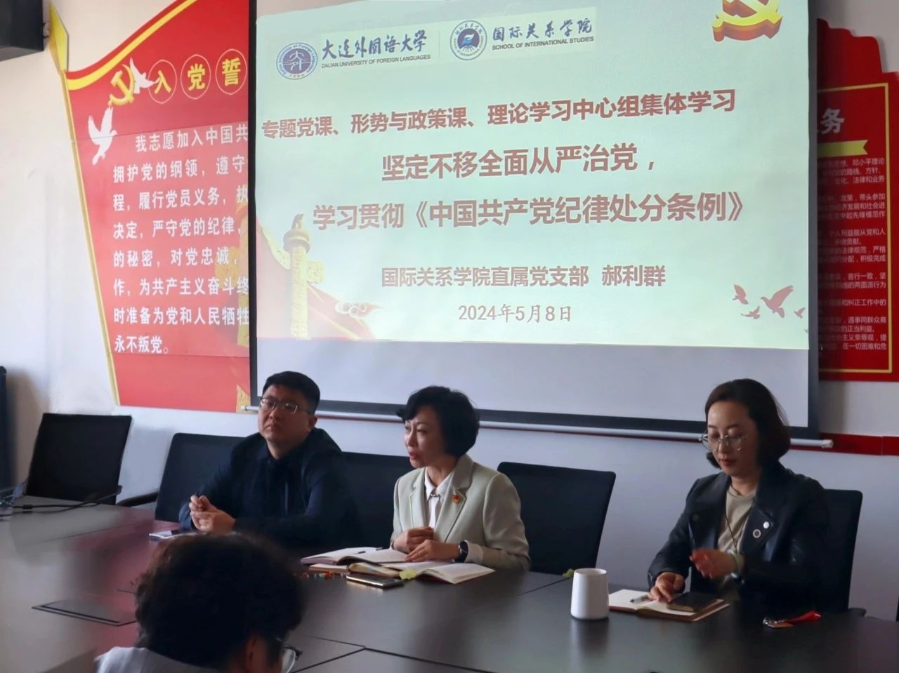 郝利群随后以“坚定不移全面从严治党,学习贯彻《中国共产党纪律处分条例》”为主进行专题党课、形势与政策课、理论学习中心组集体学习。她强调党员要严守组织纪律、政治纪律、廉洁纪律、群众纪律、工作纪律、生活纪律。她指出党员应坚决维护党中央领导,其中重点学习对违反政治纪律行为的处分,强调作为党员要严格遵守各项政治纪律和政治规矩,要遵纪守法,维护党的团结统一。党组织和党员要坚守初心使命,牢固树立“四个意识”、坚定“四个自信”,切实践行正确的政绩观、事业观,严格执行和维护党的纪律,自觉接受党纪约束。