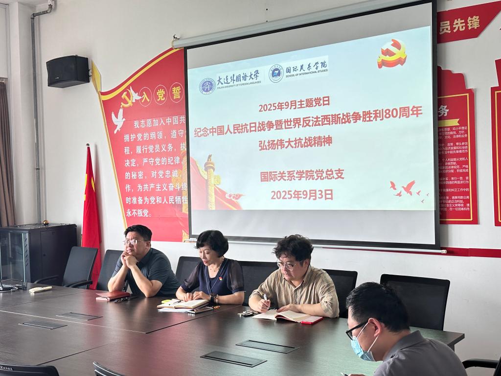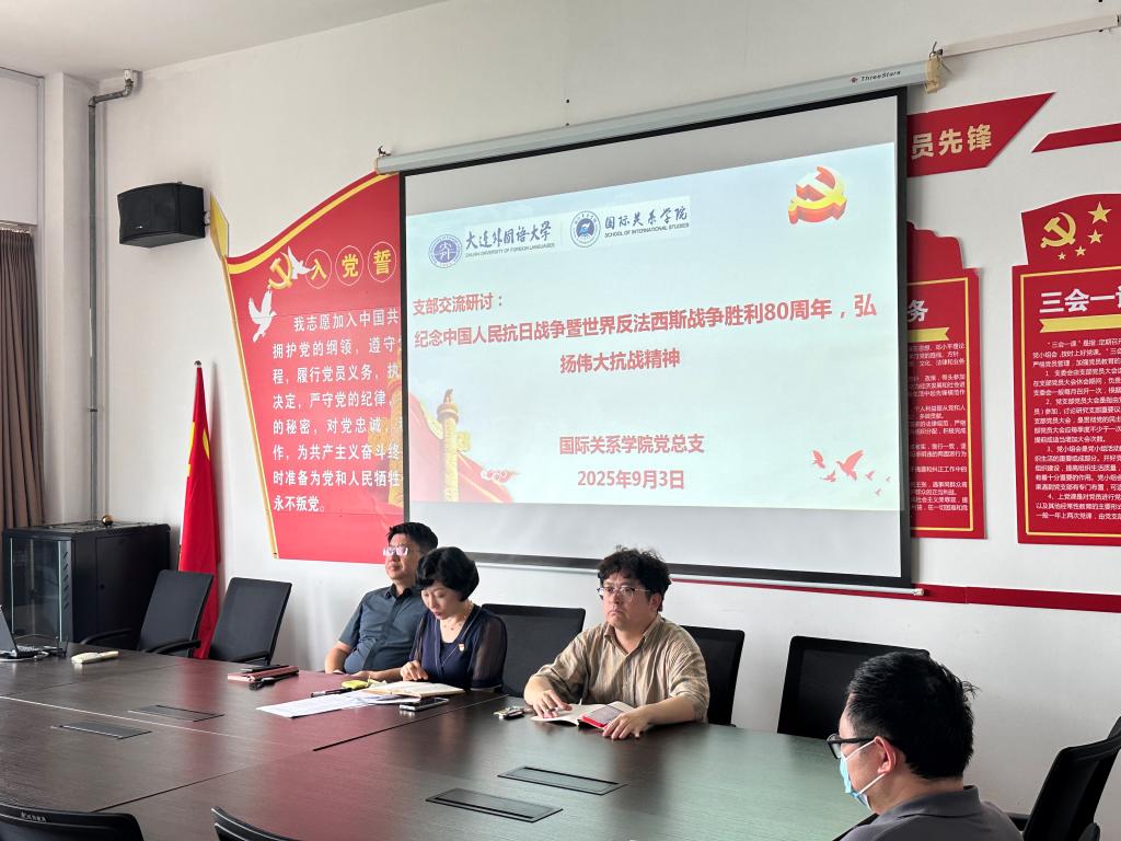 9月3日下午,午夜影院 党总支组织师生党员开展“纪念中国人民抗日战争暨世界反法西斯战争胜利80周年,弘扬伟大抗战精神”主题党日活动。本次活动由党总支书记郝利群主持。