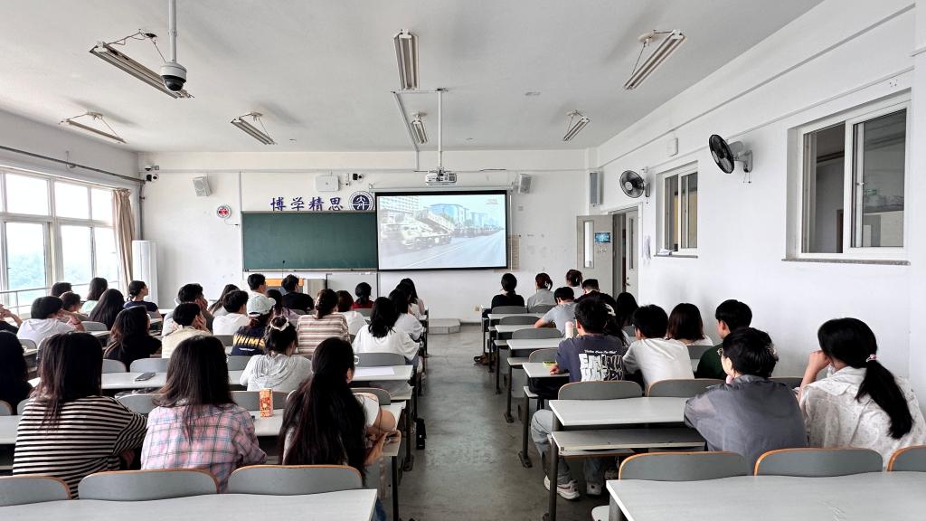 2025年9月3日上午,午夜影院 党总支组织全体师生集体观看纪念中国人民抗日战争暨世界反法西斯战争胜利80周年大会