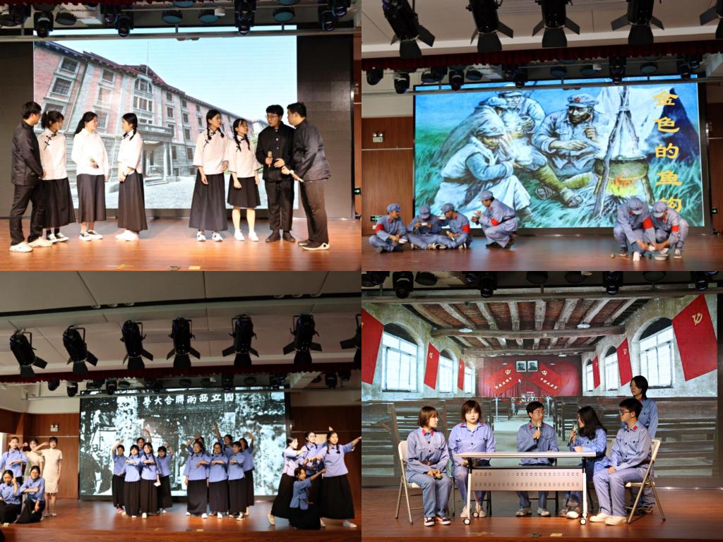 比赛伊始,由2018级2班主演的《五四之后》,回顾了中国共产党的诞生,彰显了五四运动时期青年学生的风采气度。栉风沐雨,中国共产党开始了为实现民族独立和人民解放而斗争的伟大进军。由2018级1班主演的《金色的鱼钩》、《战火中的大学生》重现了万里长征、英雄涌现的抗战历史,中国共产党劈波斩浪,阔步向前。由2019级2班的《重庆谈判》以及2018级2班的《开国大典》呈现出建国至今,共产党一次次面临历史的重要关头,一次次实现历史性的抉择。由2020级2班主演的《包产到户》、2020级1班主演的《我们的田野》真实地反映了中国共产党实事求是,顺应时代的改革与探索,带领全国人民最终取得脱贫攻坚的全面胜利。面对突如其来的严重疫情,党中央统领全局,果断决策,由2019级1班主演的《“疫”定会好的》演绎了在党的正确领导下,中国人民风雨同舟、众志成城,构筑疫情防控坚定防线的感人画面。