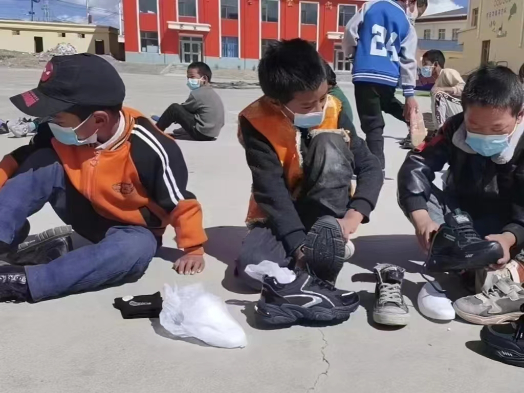 社会实践部收到了来自3000多公里外的青海省藏族自治州曲麻莱县育才小学感谢视频和照片。视频里藏族孩子们正在操场上试穿自己的新鞋,老师用藏语告诉孩子们试一试自己的鞋子,看看是否合适,并告诉他们这是来自午夜影院