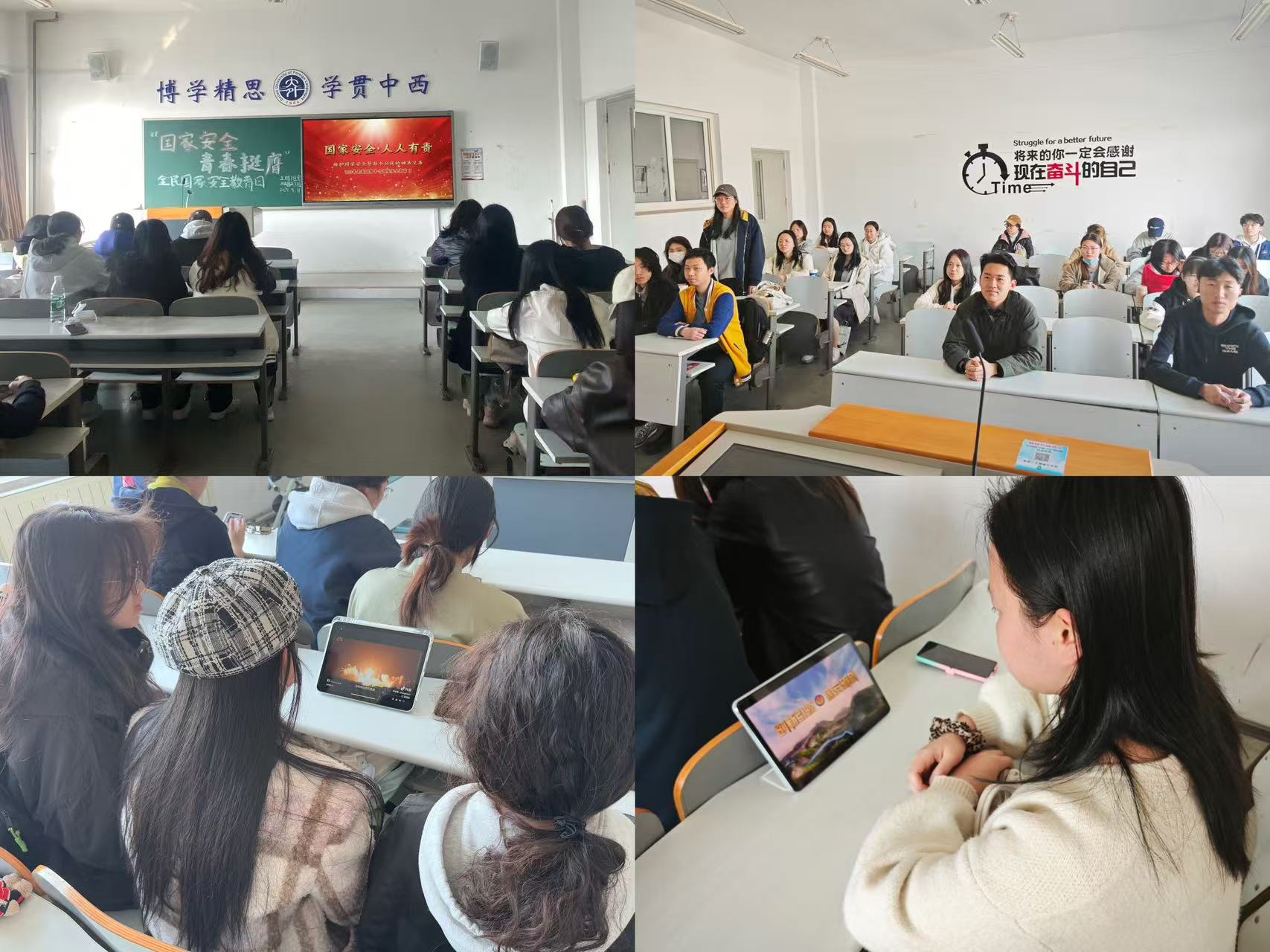 在团日活动中,各班级团支部书记带领班级学生观看国家安全宣传教育视频,学习国家安全的重要性,并对军事、政治、生物、科技、粮食、海外利益安全等方面进行学习。同学们纷纷表示,将从日常生活出发,关注身边细节,用实际行动维护国家安全。