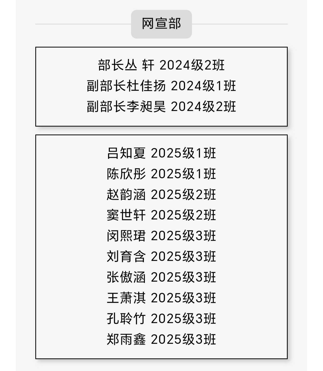 午夜影院 第九届学生组织纳新工作已圆满完成。本次纳新通过自主报名与公开面试的多轮严格筛选,综合考察个人能力、服务意识与专业适配度,最终确定了新一届学生组织成员名单。