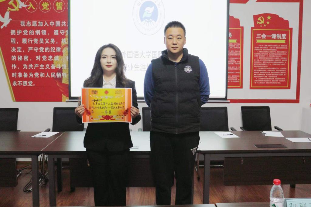 辅导员侯培岩、毕如一、2019级优秀学生张聪聪出席本次比赛并担任评委。