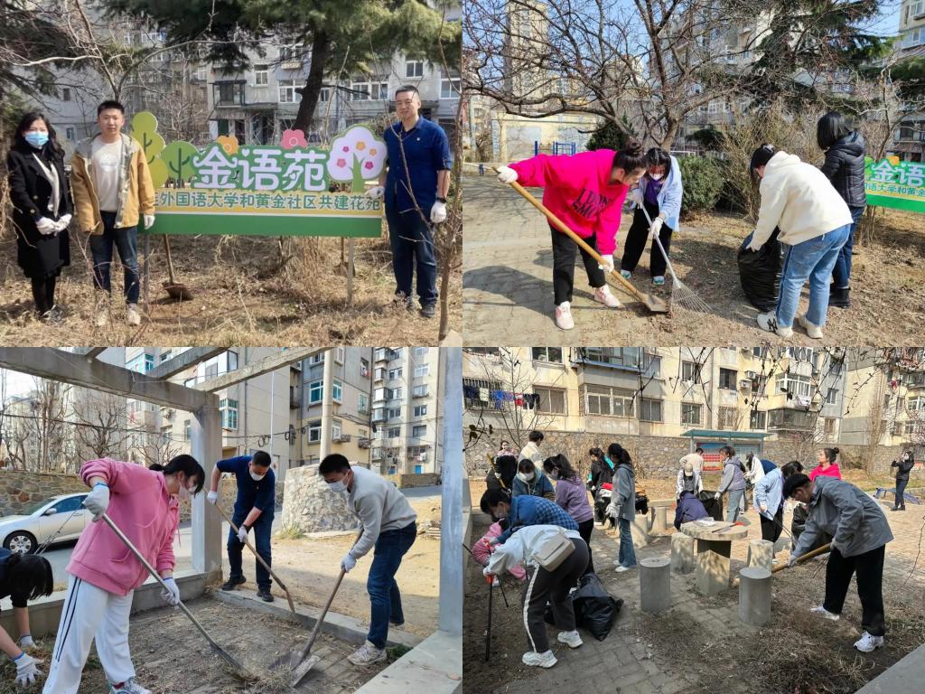 和黄金社区联盟共建的花苑,我们应发扬不怕苦不怕累的志愿精神,积极参与到清理楼院的活动当中,发挥当代青年的先锋作用。