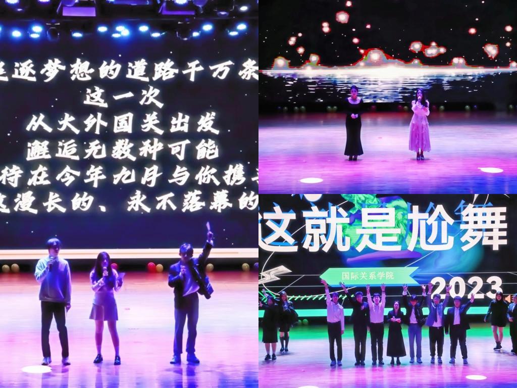 晚会开始前,在场师生一同观看了回顾2023学院大事记的特制视频。在《国关欢迎你》热情的歌声中,晚会徐徐拉开序幕。合唱《如果爱忘了》、舞蹈喜剧《这就是尬舞》调动起在场师生情绪,将晚会氛围推向高潮。
