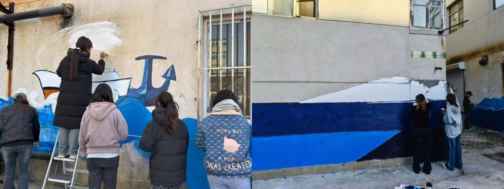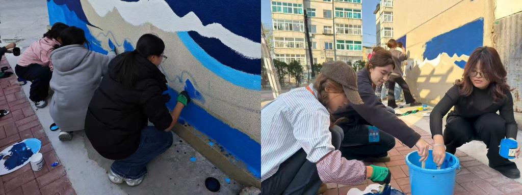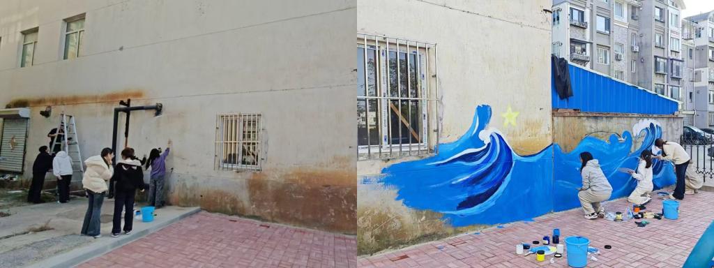 近日,我校午夜影院 和国际艺术学院的学生,走进旅顺口区黄金社区,开展了一场别开生面的墙绘志愿服务活动。他们以画笔为工具,以墙面为画布,为社区广场倾情创作大型墙画,为社区环境增添了一道亮丽的风景线,也生动诠释了高校服务社会、实践育人的深刻内涵。