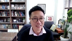 随后,韩德睿老师也对会议进行了总结。他将会议内容概括为三个关键词:“亚洲”、“合作”和“未来”。他指出,中韩两国之间的合作具有无限可能,未来掌握在年轻人手中。他期待延世大学的同学们能够来到大外,双方再度探讨东北亚区域研究中有价值的议题。
